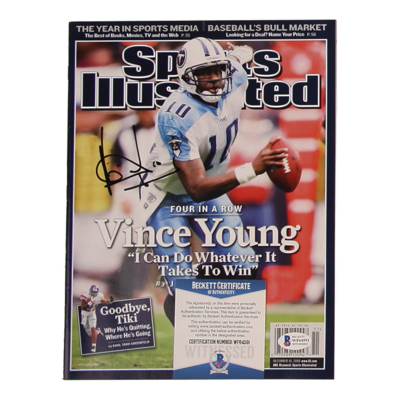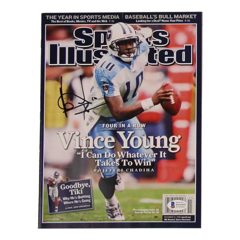 December 18th, 2006 Issue of Sports Illustrated Magazine has been hand-signed on the front cover by Vince Young (Tennessee Titans).