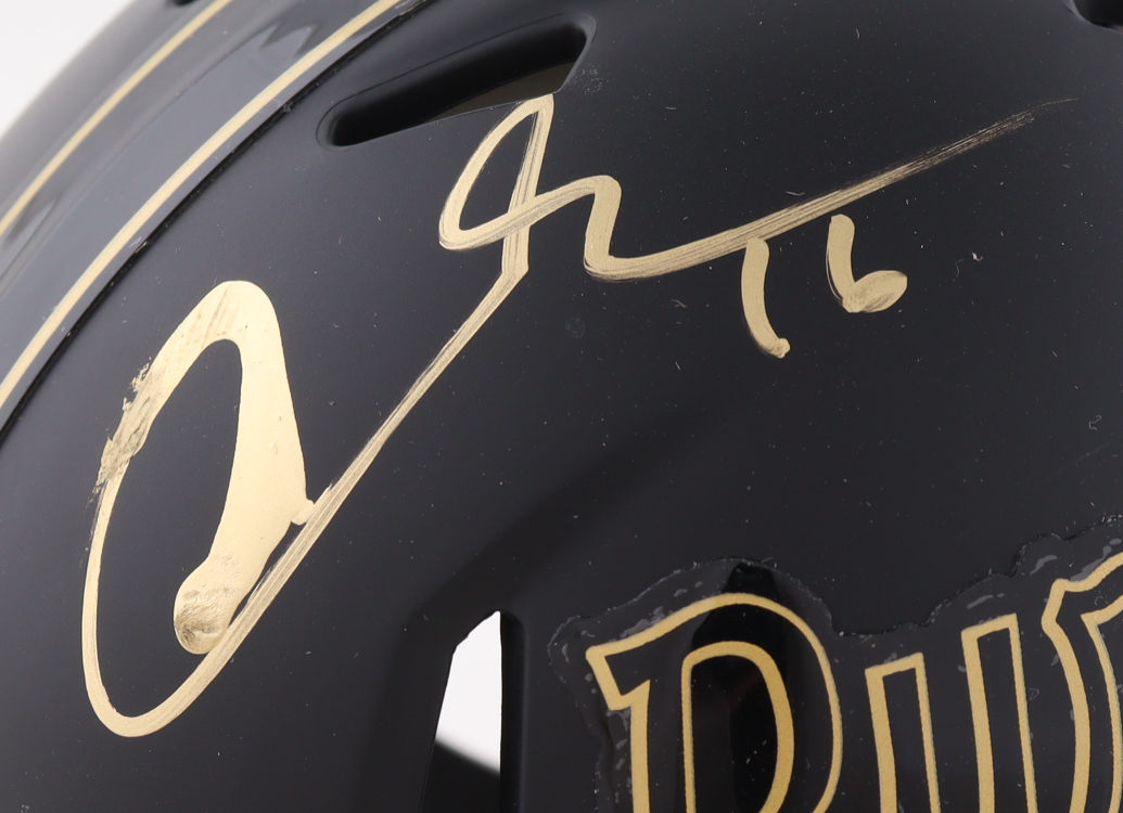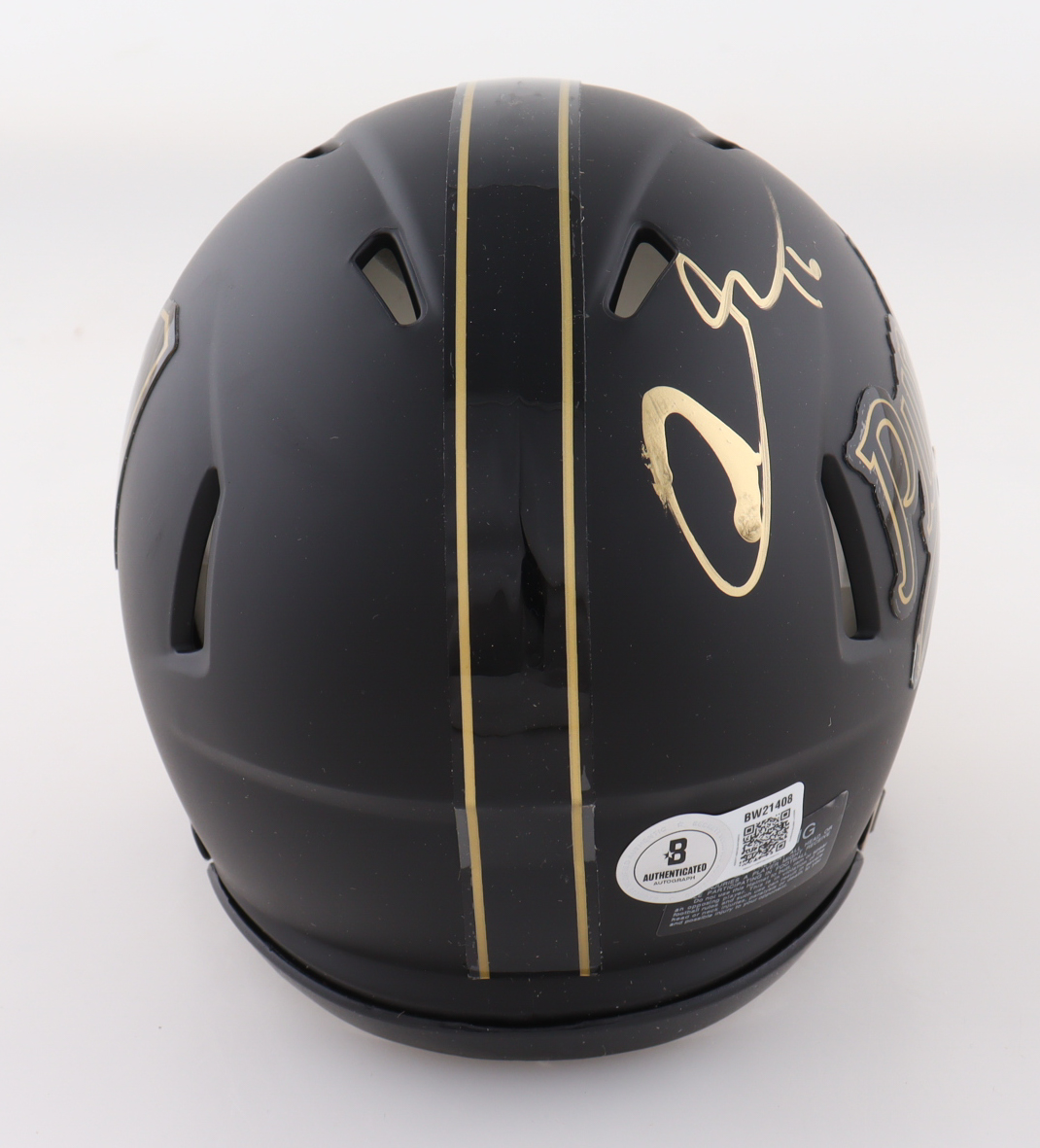 Riddell Purdue Boilermakers Speed Mini Helmet. Hand-signed by Aidan O'Connell. Please note the signature is smudged.