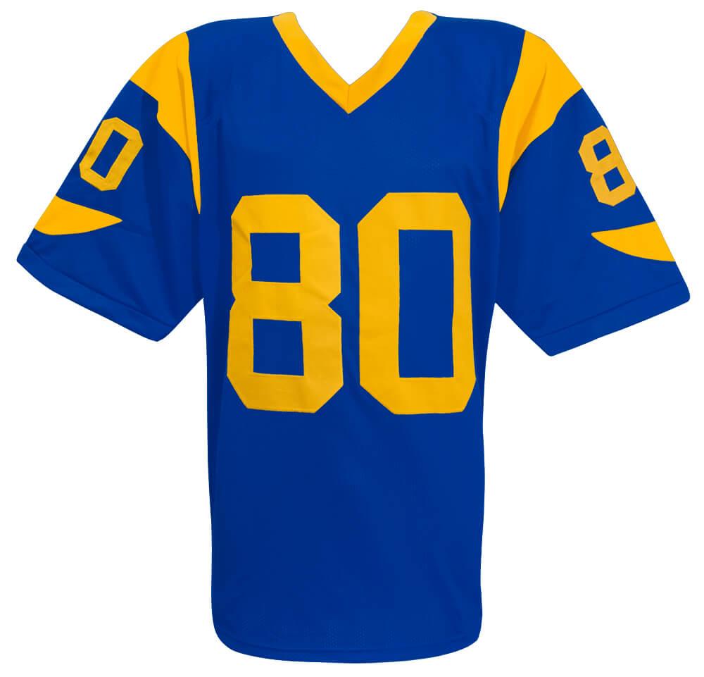 Custom jersey with everything sewn on, size XL. Hand-signed by Henry Ellard.