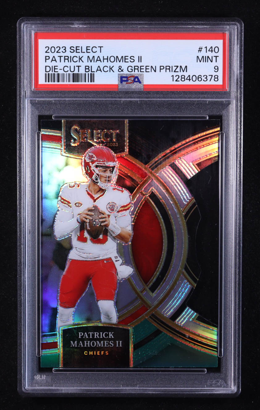 Patrick Mahomes II 2023 Select Prizm Black and Green Die Cut #140 (PSA 9)