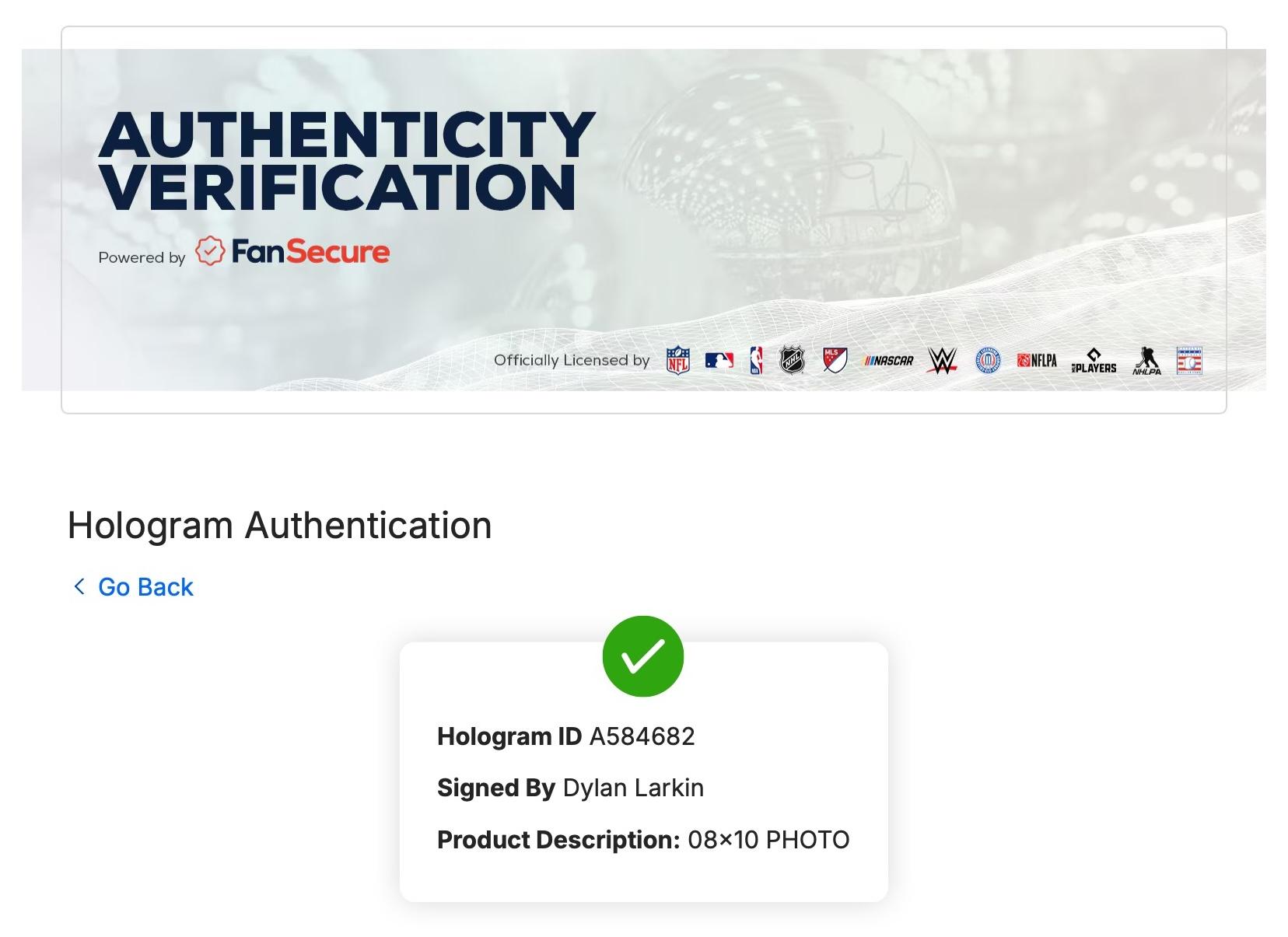 Authentication: Fanatics Hologram