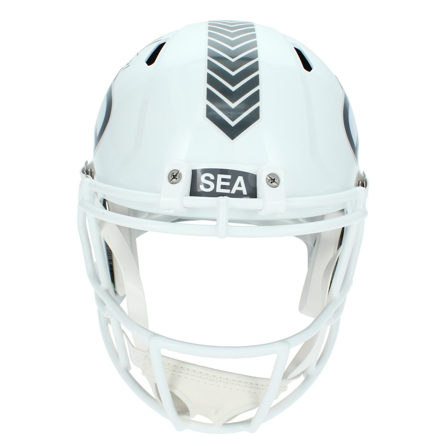 Riddell Seattle Seahawks full-size salute to service alternate speed replica helmet has been hand-signed by Kam Chancellor.