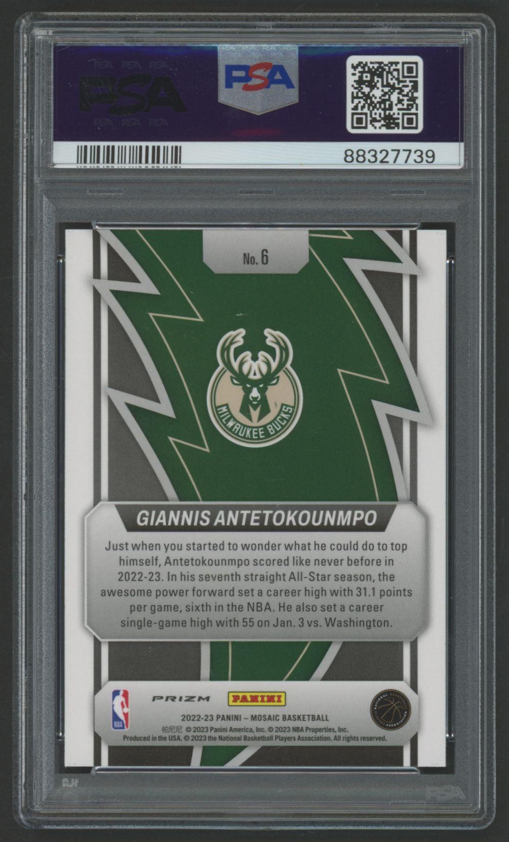 Giannis Antetokounmpo 2022 Mosaic Thunder Road Green Mosaic #6 (PSA 10)
