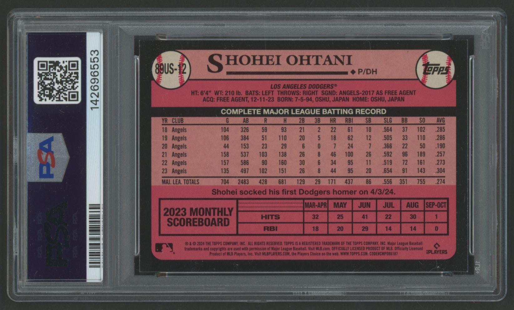 Shohei Ohtani 2024 Topps Update '1989 #89US12 (PSA 9)