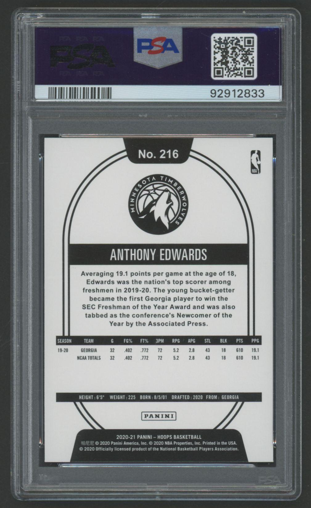 Anthony Edwards 2020-21 Hoops Winter #216 RC (PSA 10)