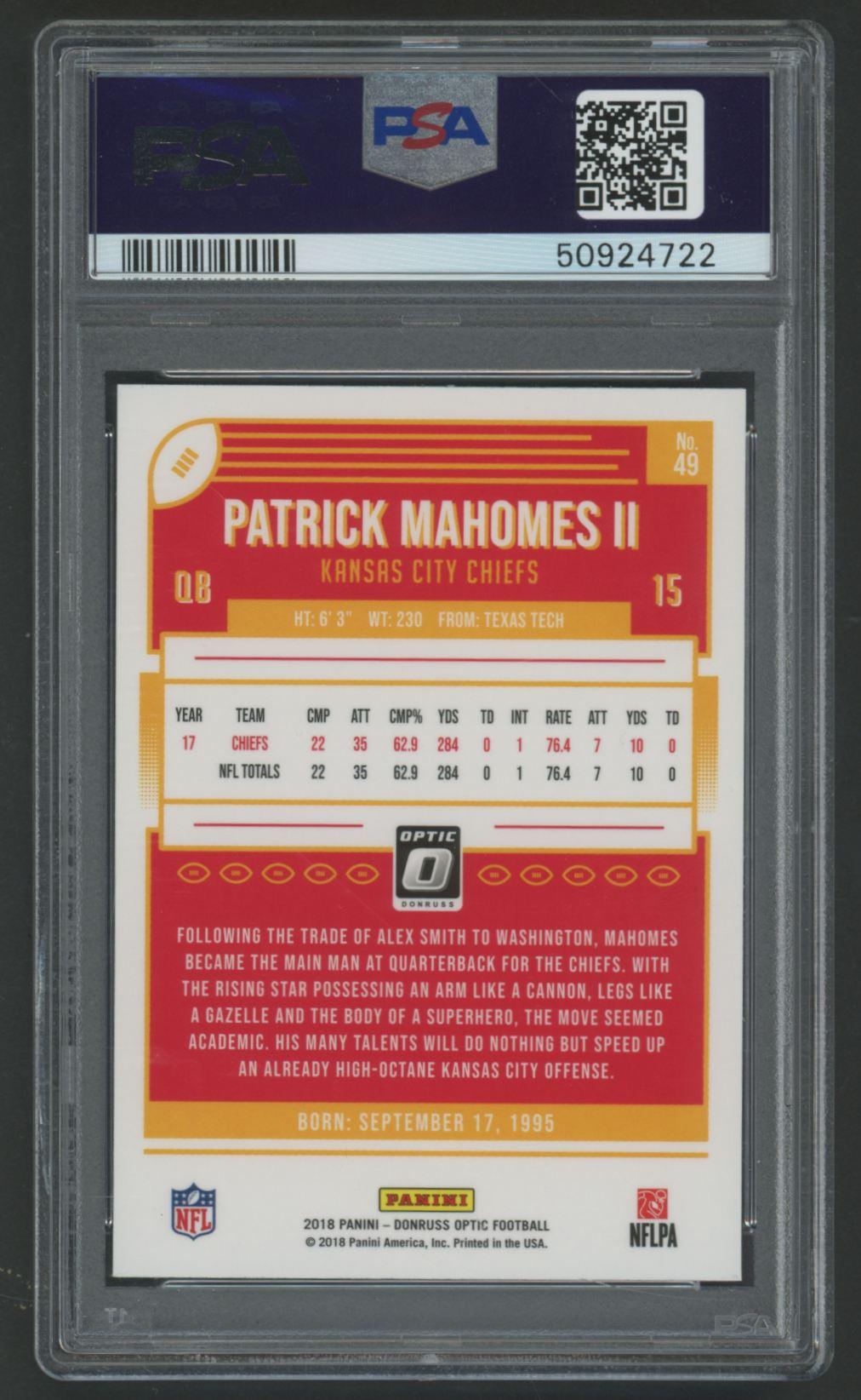 Patrick Mahomes II 2018 Donruss Optic #49 (PSA 10)