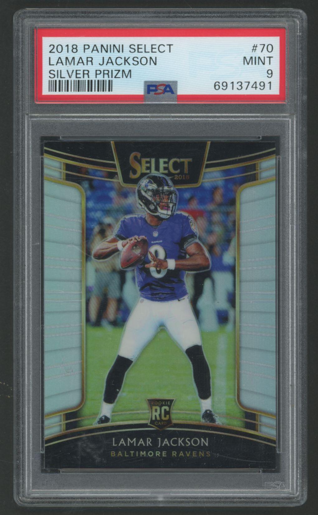 Lamar Jackson 2018 Panini Select Silver Prizm #70 RC (PSA 9)