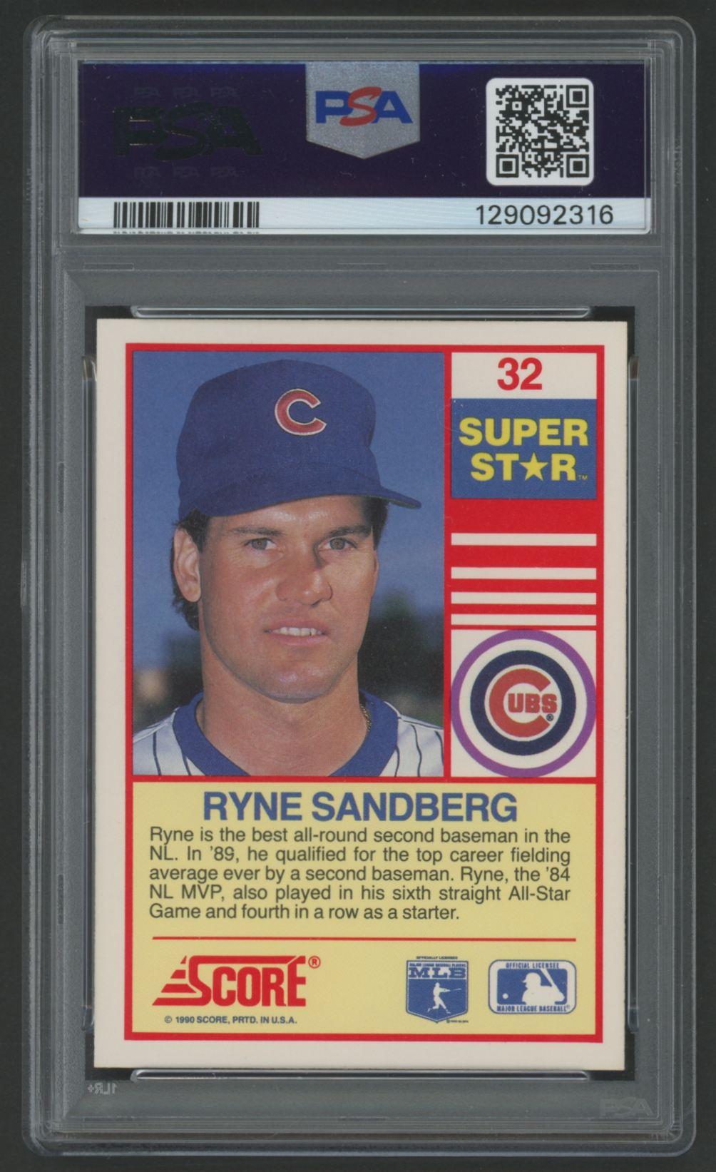 Ryne Sandberg Signed 1990 Score Superstar #32 (PSA 9 | Auto 10)