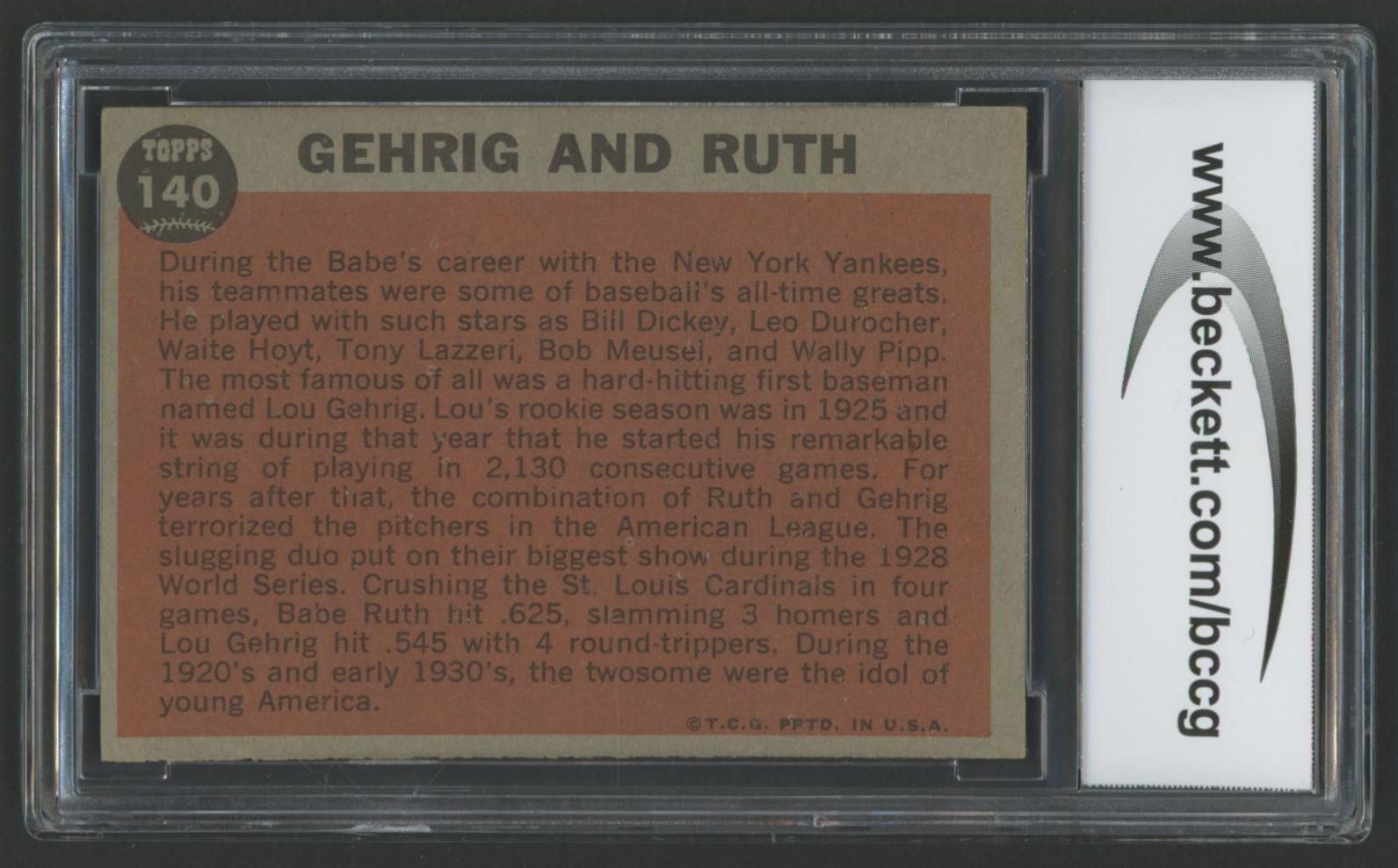 Babe Ruth / Lou Gehrig 1962 Topps Babe Ruth Special 6 Green Tint #140A (BCCG 8)
