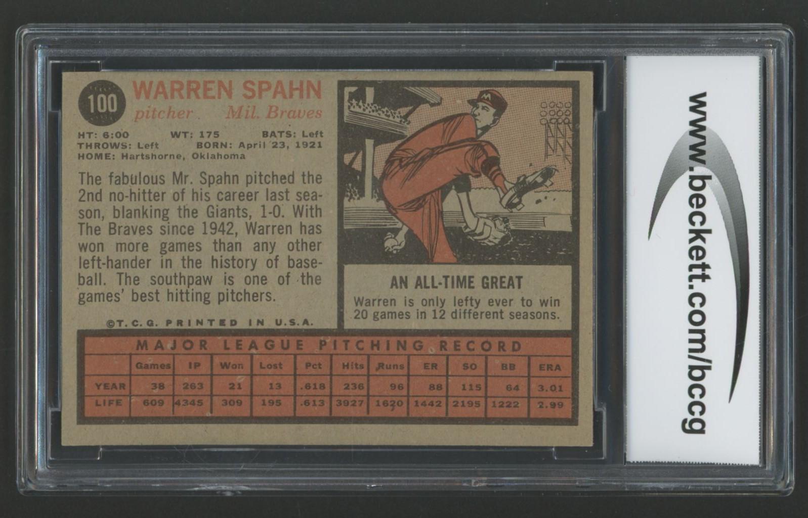 Warren Spahn 1962 Topps #100 (BCCG 8)