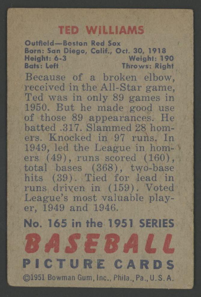 Ted Williams 1951 Bowman #165