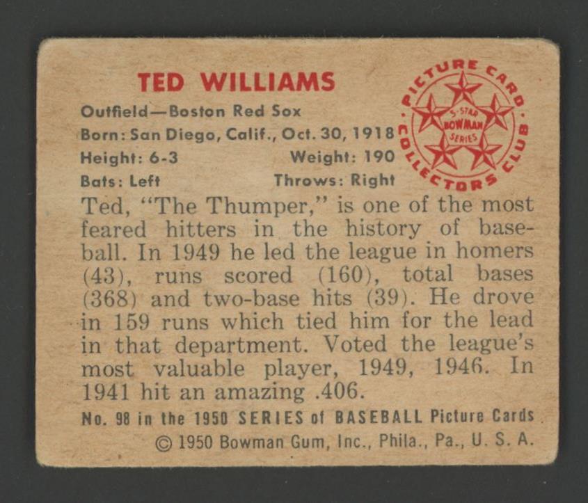Ted Williams 1950 Bowman #98