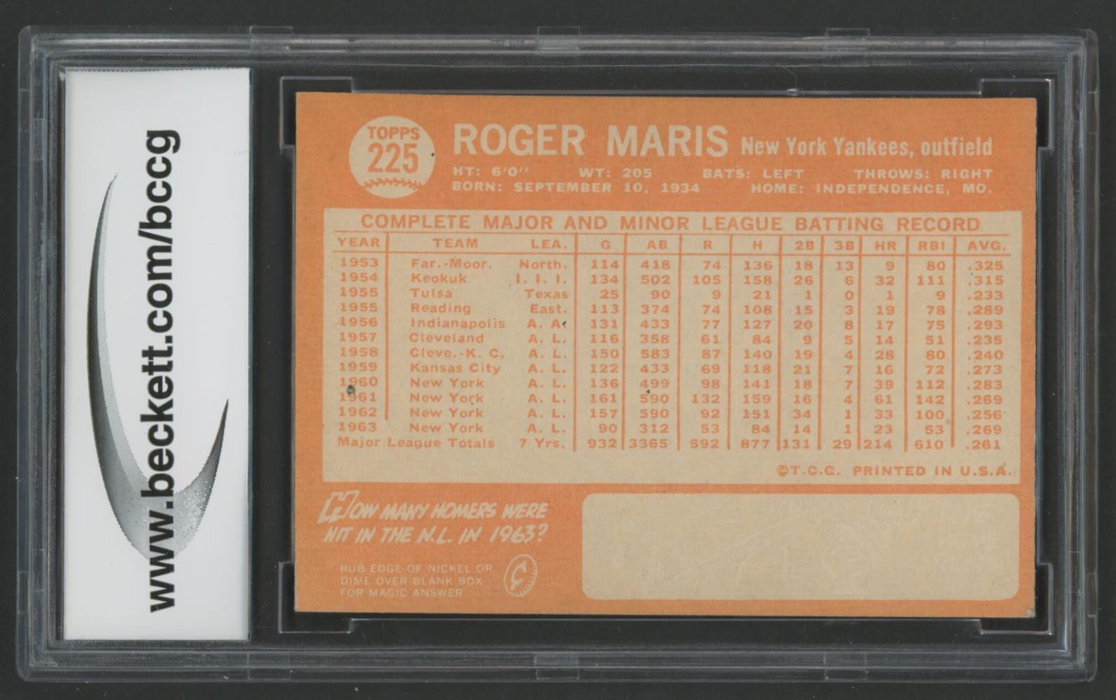 Roger Maris 1964 Topps #225 (BCCG 9)