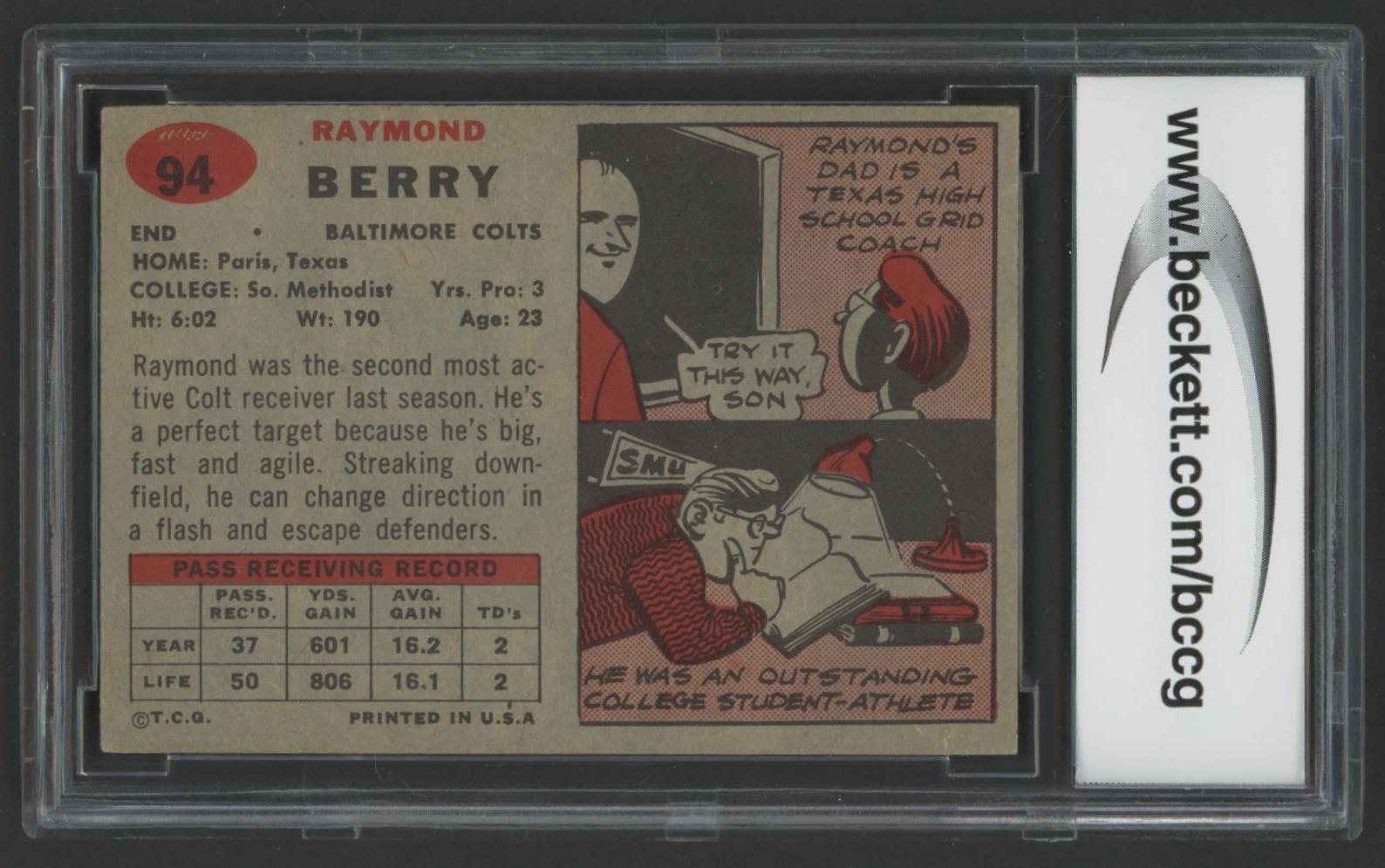 Raymond Berry 1957 Topps #94 RC (BCCG 8)