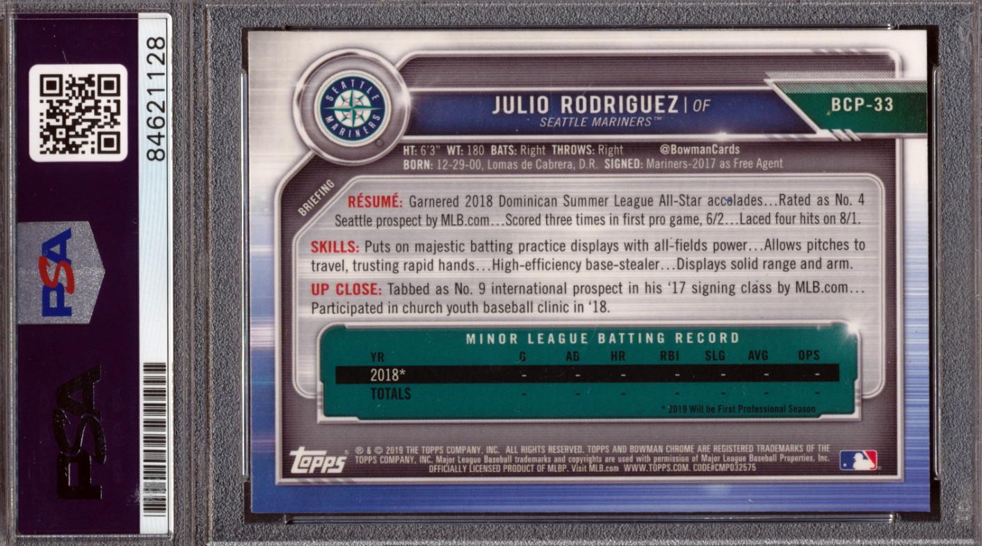 Julio Rodriguez Signed 2019 Bowman Chrome Prospects #BCP33 (PSA)
