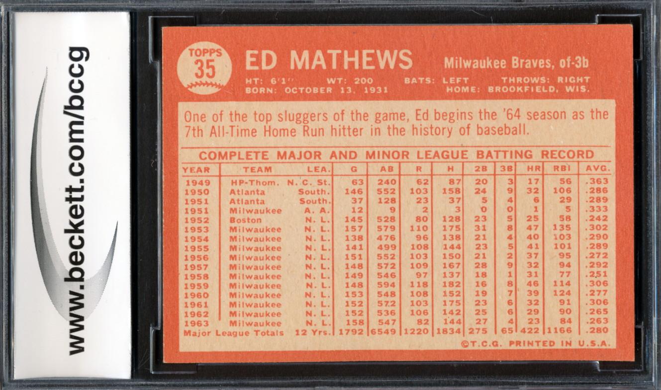 Eddie Mathews 1964 Topps #35 (BCCG 9)