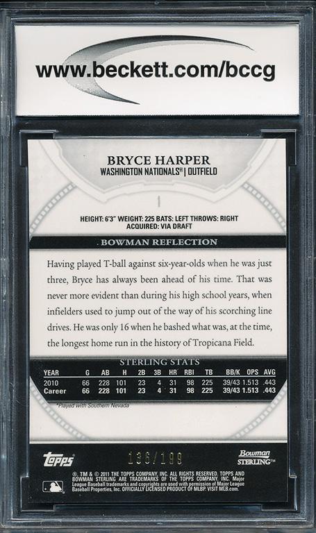 Bryce Harper 2011 Bowman Sterling Prospects Refractors #1 #136/199 (BCCG 10)