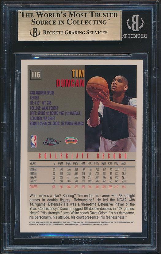 Tim Duncan 1997-98 Topps Chrome #115 RC (BGS 9.5)