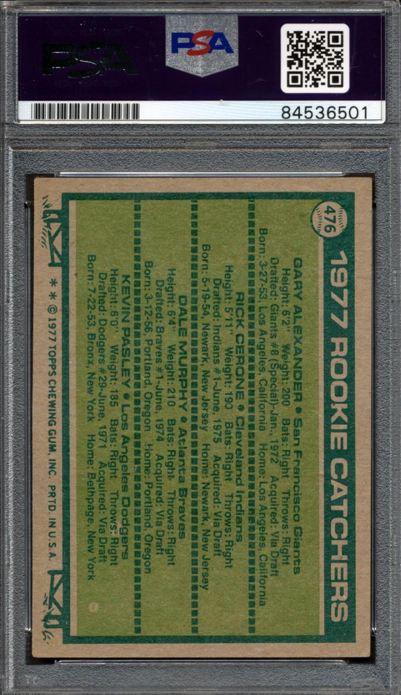 Dale Murphy Signed Gary Alexander RC / Rick Cerone RC / Dale Murphy RC / Kevin Pasley RC 1977 Topps Rookie Catchers #476 (PSA | Autograph Graded 10)