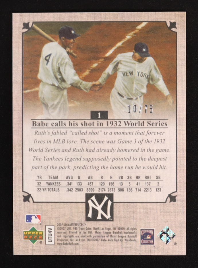 Babe Ruth 2007 UD Masterpieces Pinot Red #1 #10/75