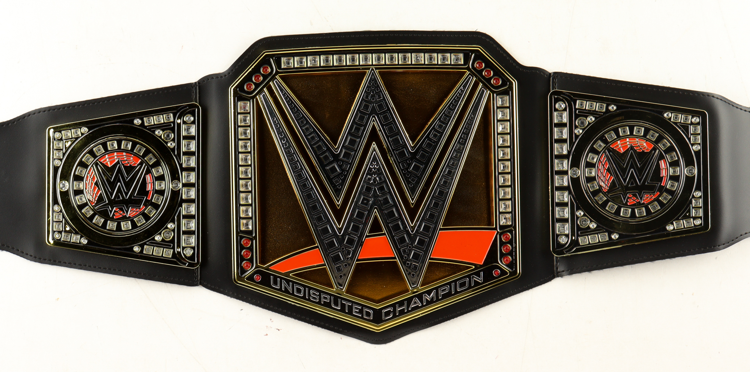 Replica WWE Toy Championship Belt measures approximately 37" in length and has been hand-signed by Bill Goldberg (HOF). Please note the signature is heavily smudged, see photos for details regarding the condition of the belt.