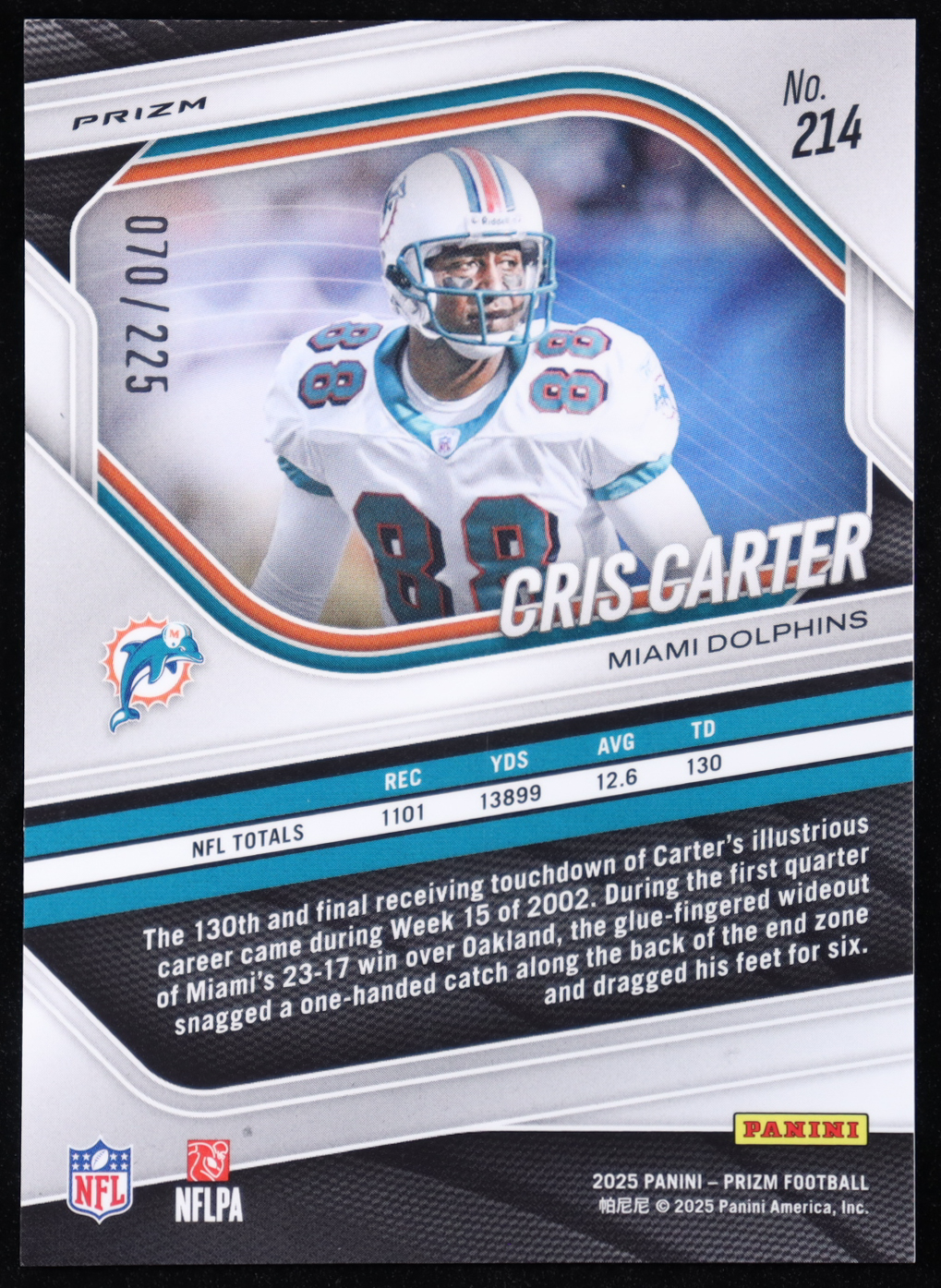 Cris Carter 2025 Panini Prizm Prizms Purple Ice #214 #070/225