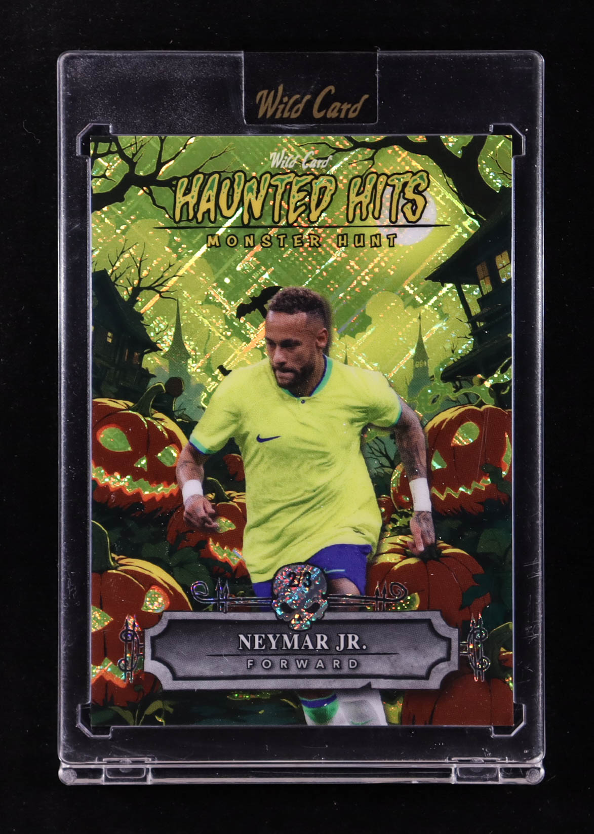 Neymar Jr. 2025 Wild Card Haunted Hits Monster Hunt Pumpkin Patch Yellow Cross Hatch Foil #HHP-NJ #2/3
