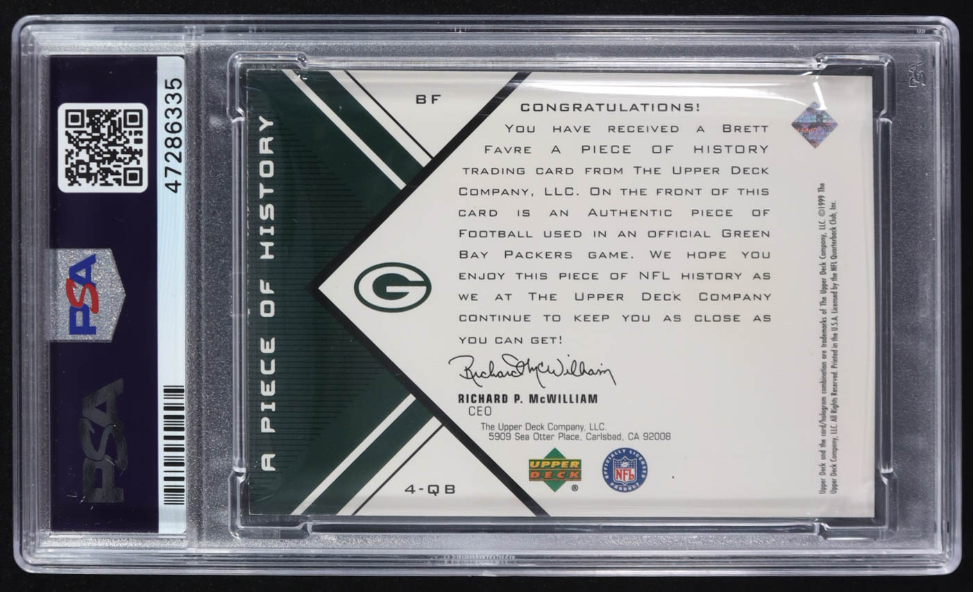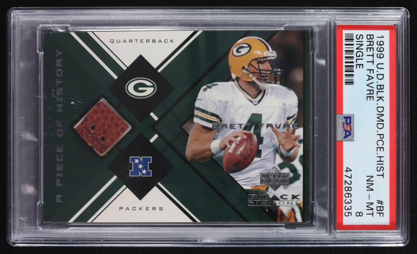 Brett Favre 1999 Upper Deck Black Diamond Single A Piece Of History #BF (PSA 8)