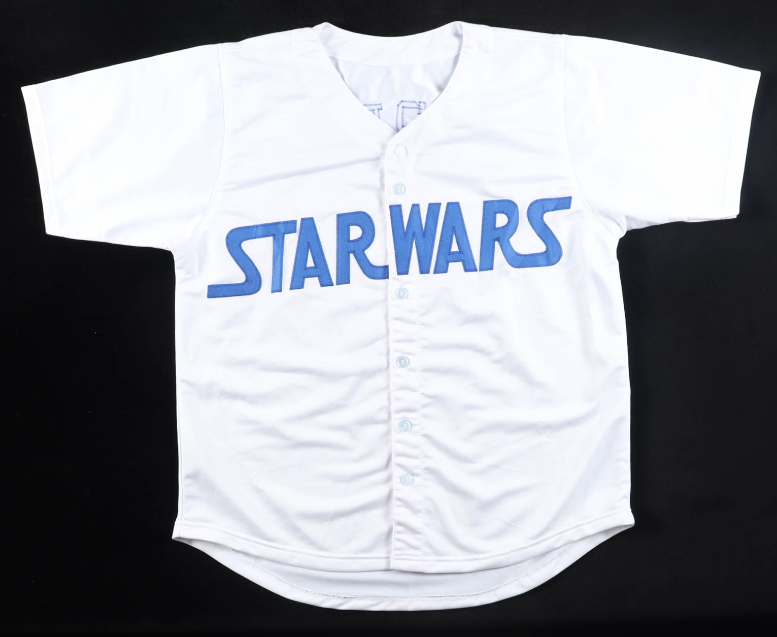 Custom jersey, everything has been sewn on, size XL, and has been hand-signed by Christine Galey. (Portrays R2-D2).