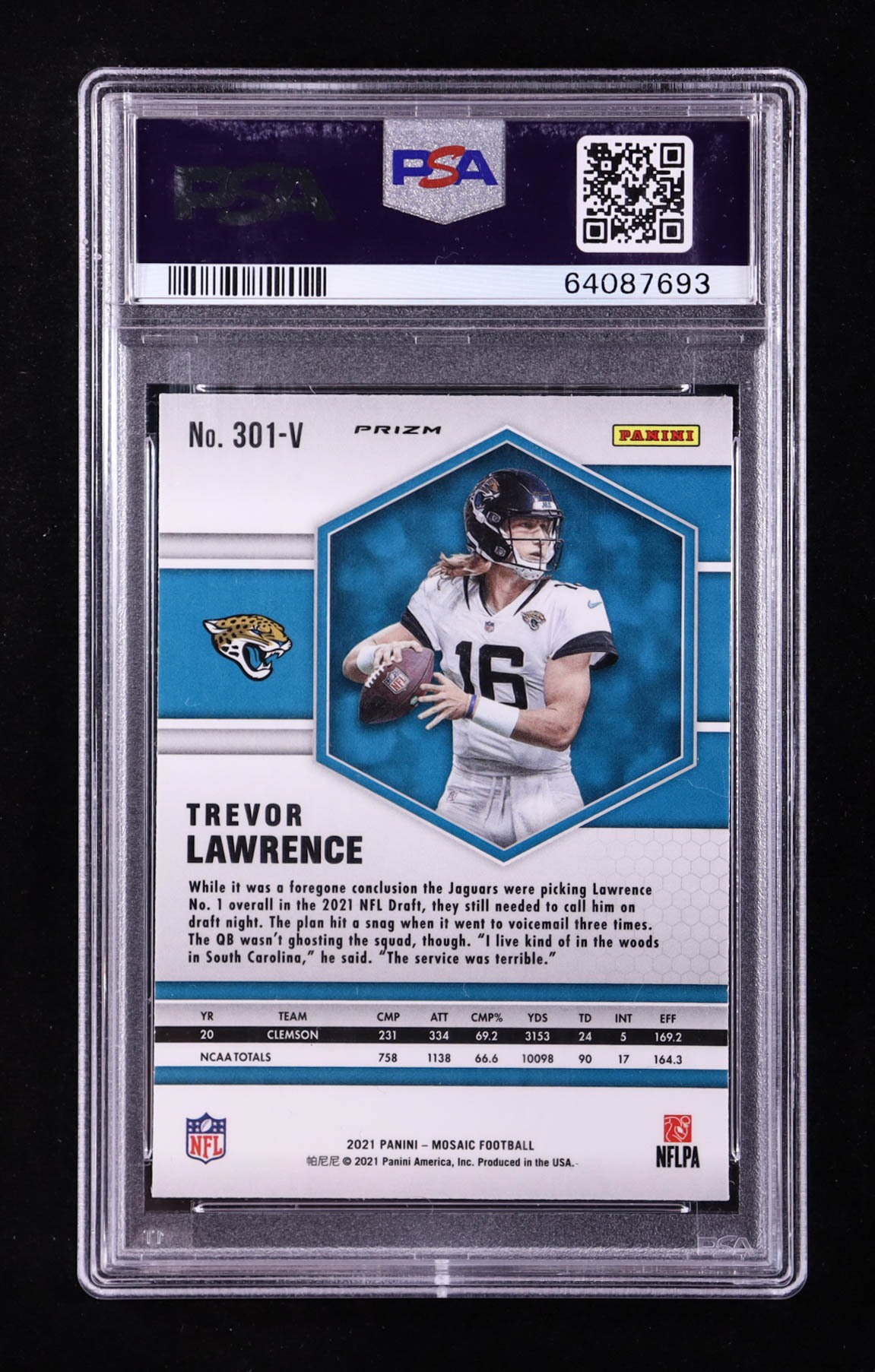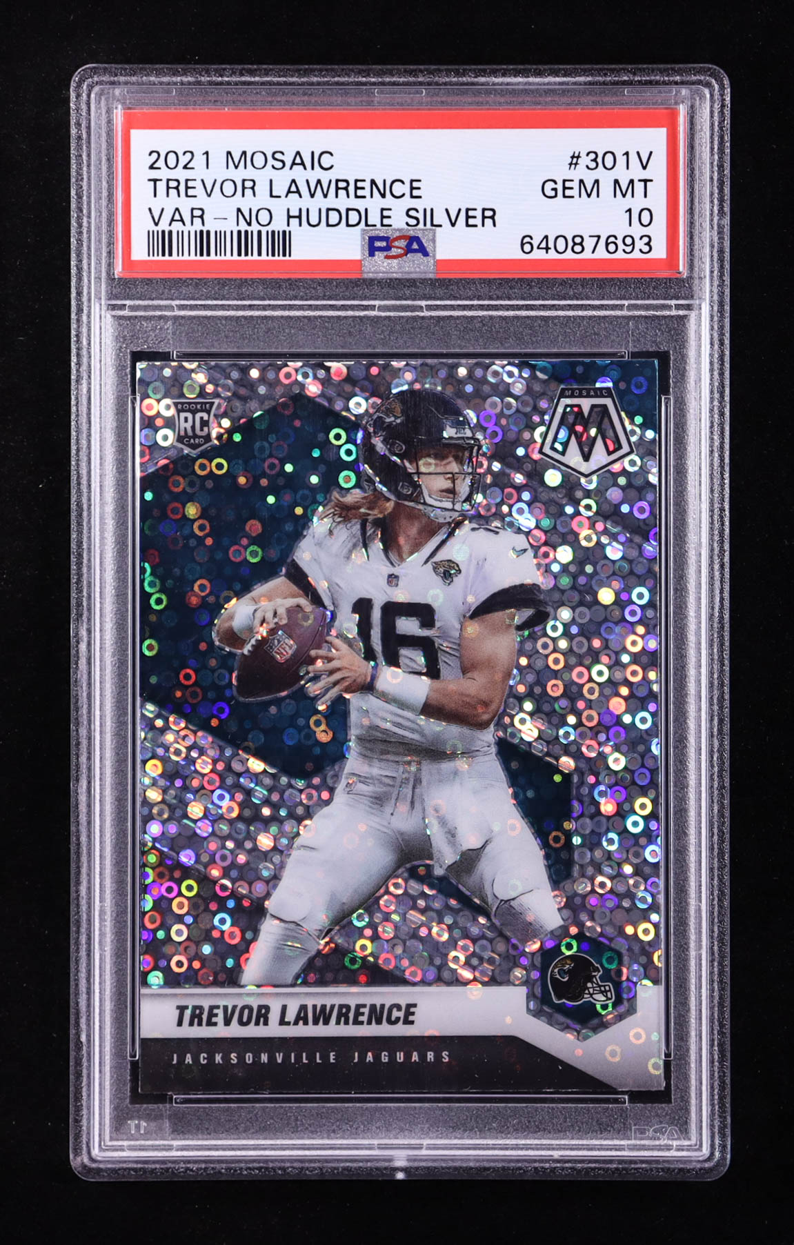Trevor Lawrence 2021 Panini Mosaic Rookie Variations No Huddle Silver #301 RC (PSA 10)