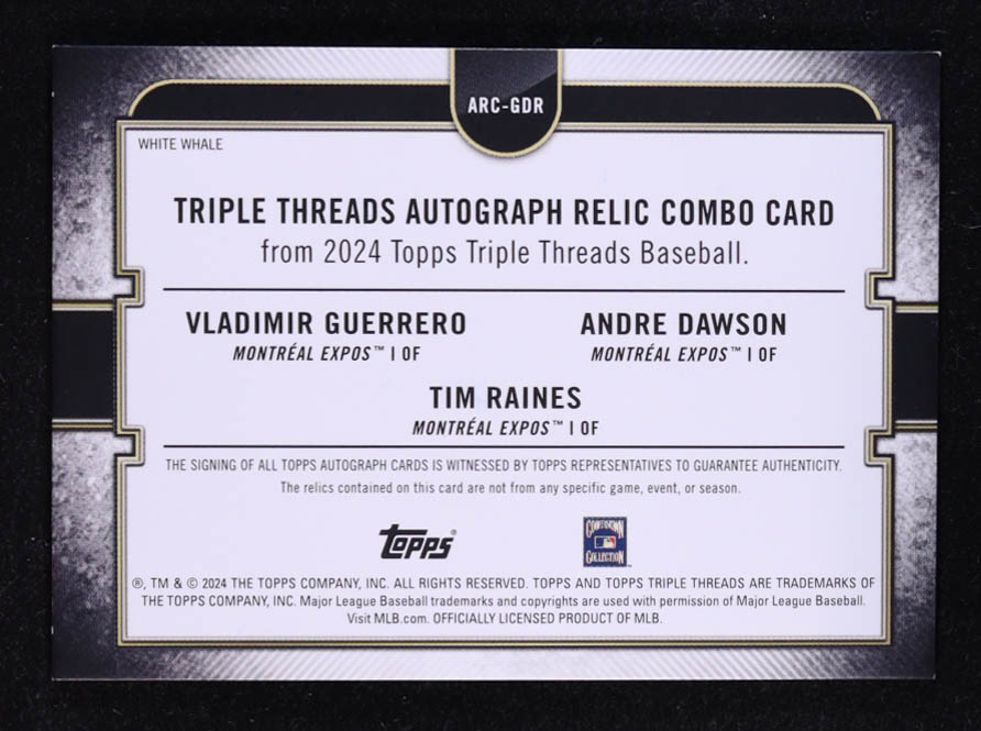 Andre Dawson / Vladimir Guerrero / Tim Raines 2024 Topps Triple Threads Combo Triple Autograph Relics #ARCGDR #14/36