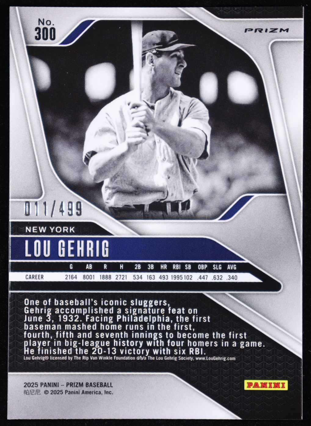 Lou Gehrig 2025 Panini Prizm Prizms Pulsar #300 #011/499