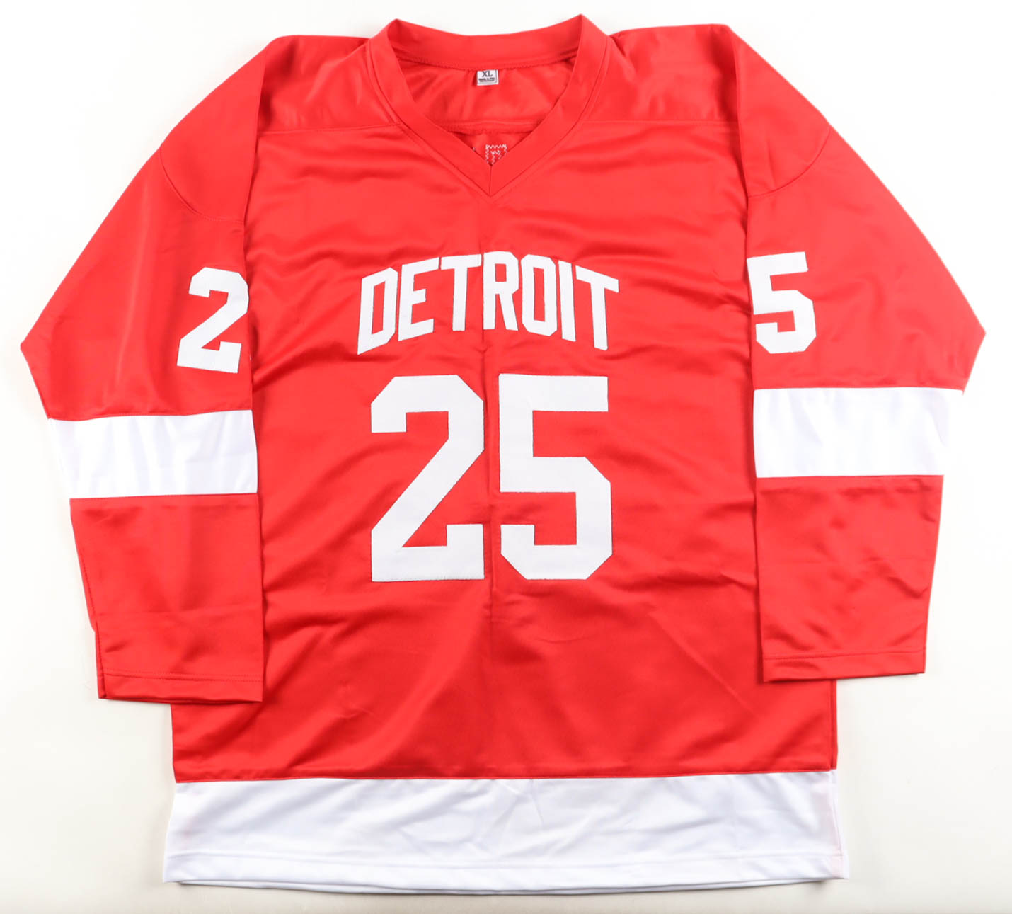 Custom style jersey with everything sewn on, size XL. Hand-signed by Darren McCarty.