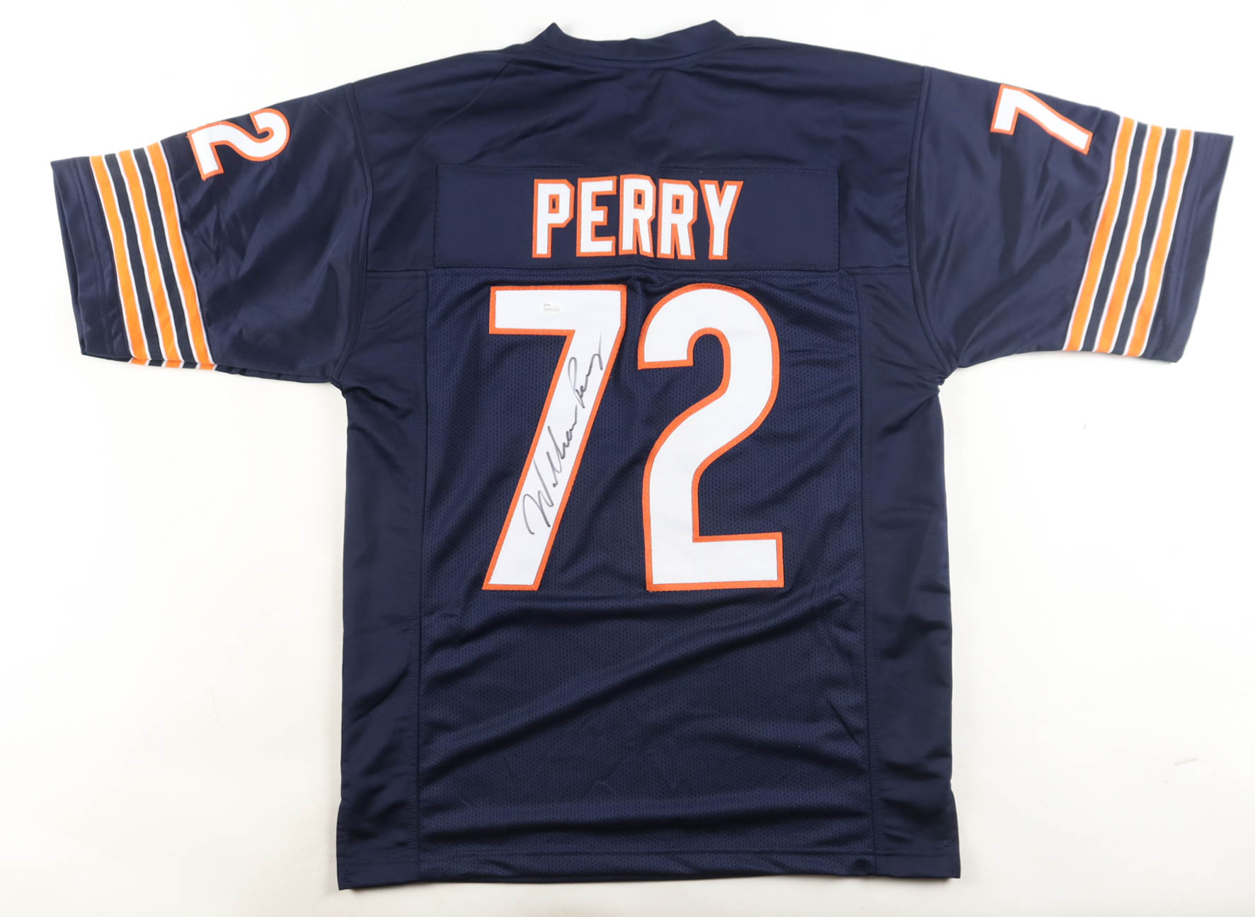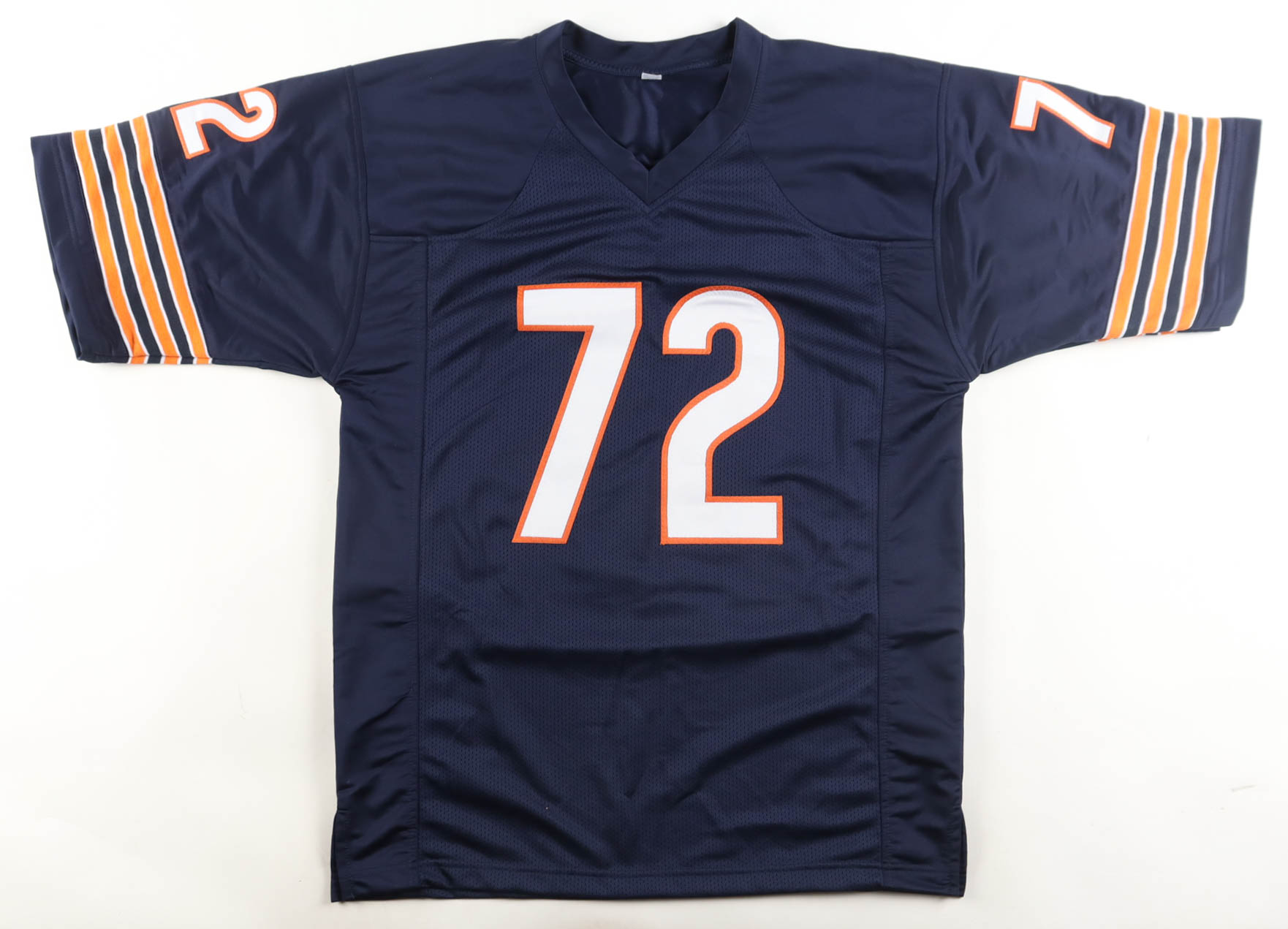 Custom jersey with everything sewn on, size XL. Hand-signed by William Perry. Please note, glue is visible through the reverse number.