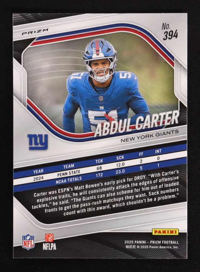 Abdul Carter 2025 Panini Prizm Prizms White Disco #394 RC