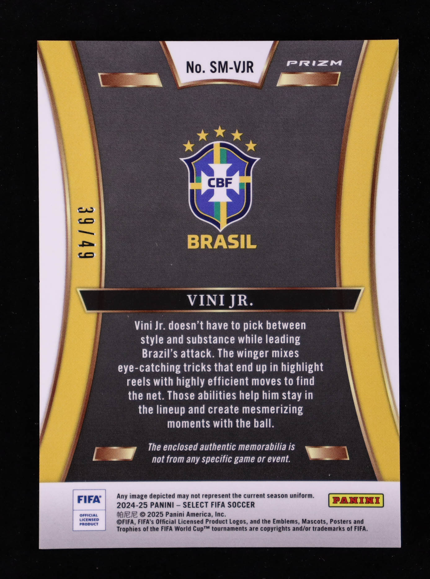 Vini Jr. 2024-25 Select FIFA Select Memorabilia FIFA Purple #5 #39/49