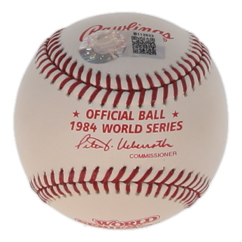 Rawlings Official 1984 World Series Baseball. Hand-signed and inscribed by Alan Trammell (Detroit Tigers, HOF).