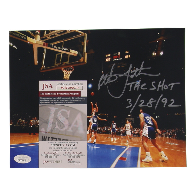 Christian Laettner Signed Duke Blue Devils 8x10 Photo Inscribed "The Shot 3/28/92" (JSA)