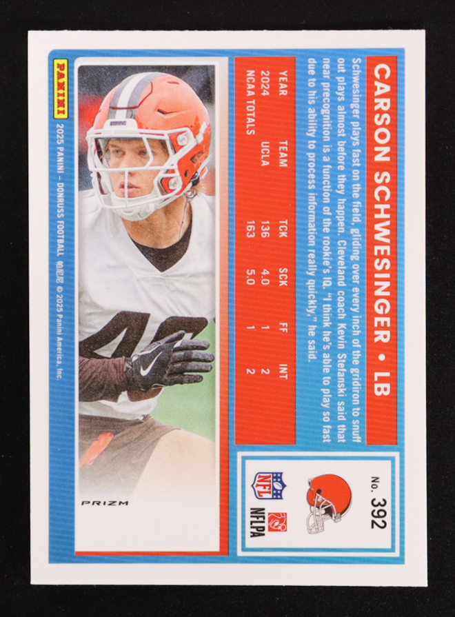 Carson Schwesinger 2025 Donruss Optic Rated Rookies Preview Pink #392 RC