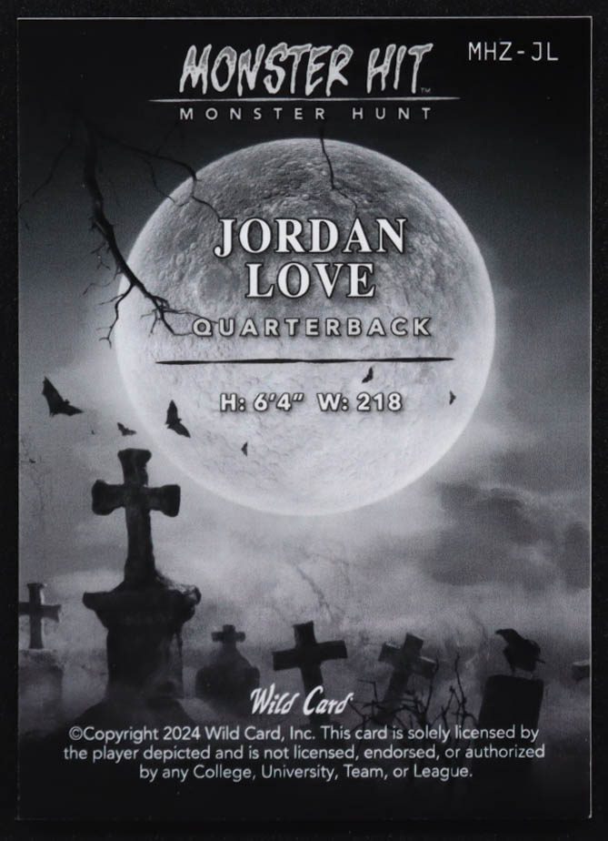 Jordan Love 2024 Wild Card Monster Hit Monster Hunt #MHZ-JL #1/1