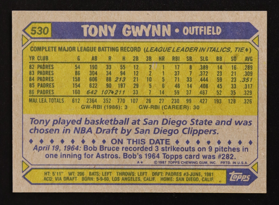 Tony Gwynn 1987 Topps Tiffany #530