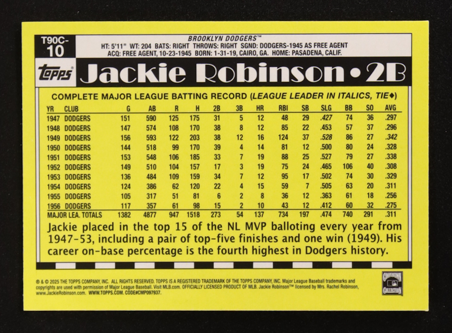 Jackie Robinson 2025 Topps '90 Topps Silver Pack Chrome #T90C10