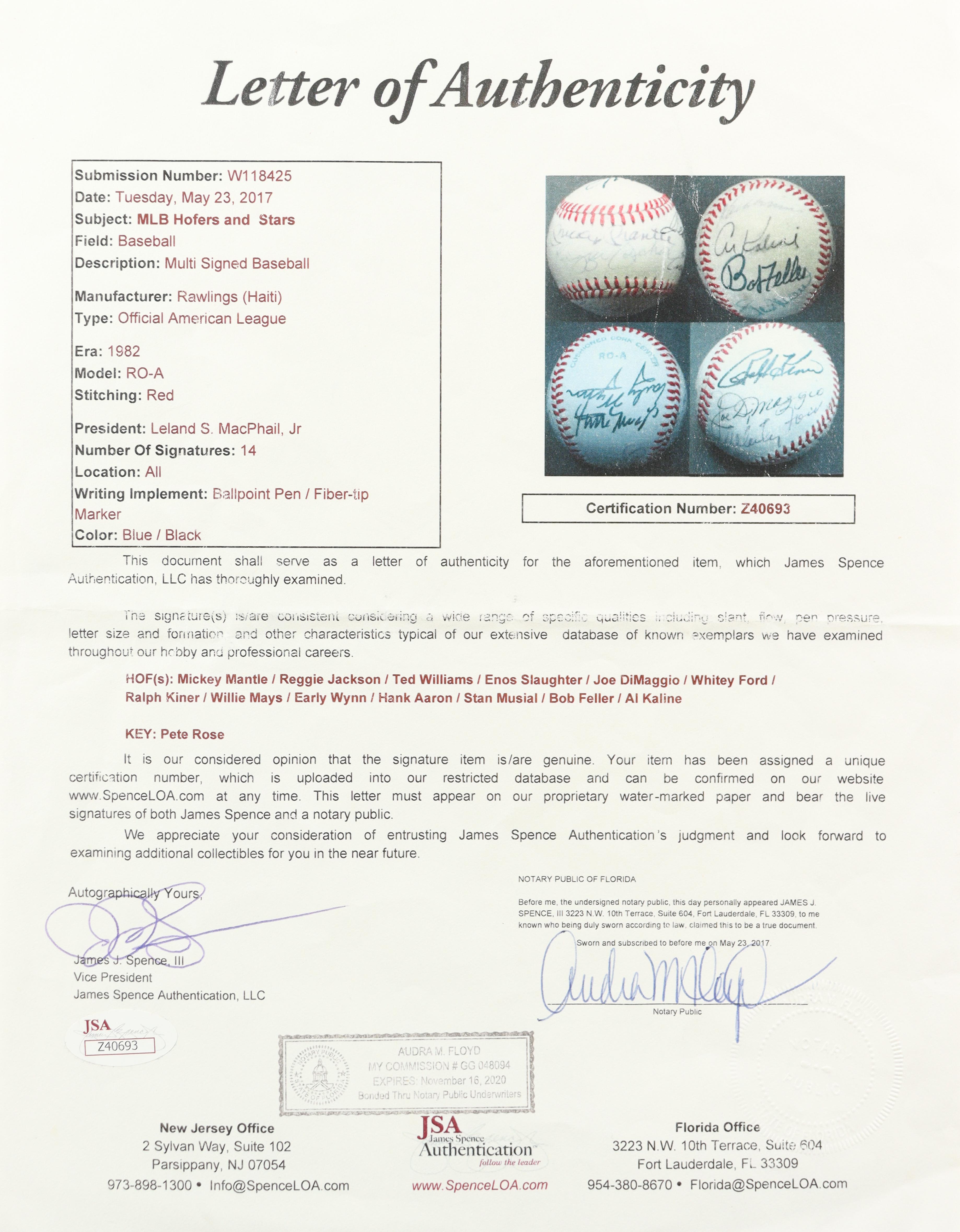 Mickey Mantle, Reggie Jackson, Ted Williams, Hank Aaron | Baseball Hall of Famers & Stars OAL Baseball Signed By (14) (JSA)