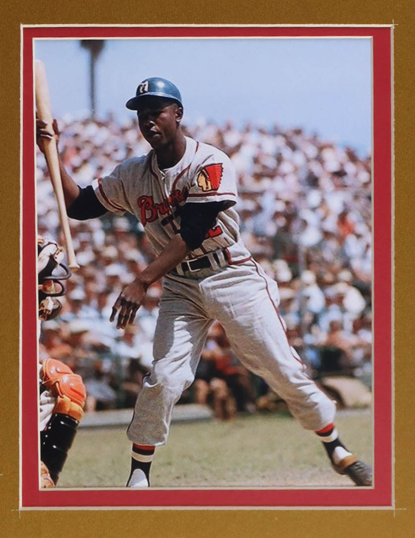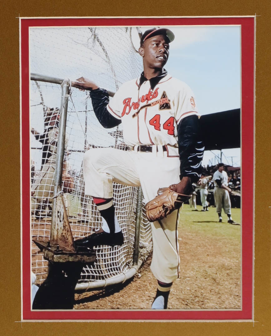 Custom frame display measures approximately 32" x 36" in size and features a jersey and a cut that has been hand-signed and inscribed by Hank Aaron (D. 2021, HOF). The display also includes a Hall of Fame Induction emblem, (2) 8" x 10" photos and (2) cloth team logo patches. Please see photos for more details regarding the condition of the item.