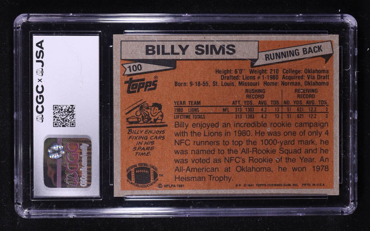 Billy Sims Signed 1981 Topps #100 AP RC (CGC)