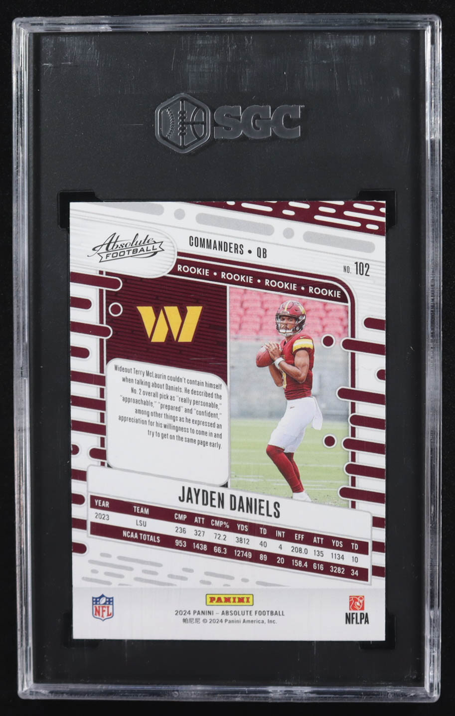 Jayden Daniels 2024 Panini Absolute Red & Blue #102 RC (SGC 9.5)