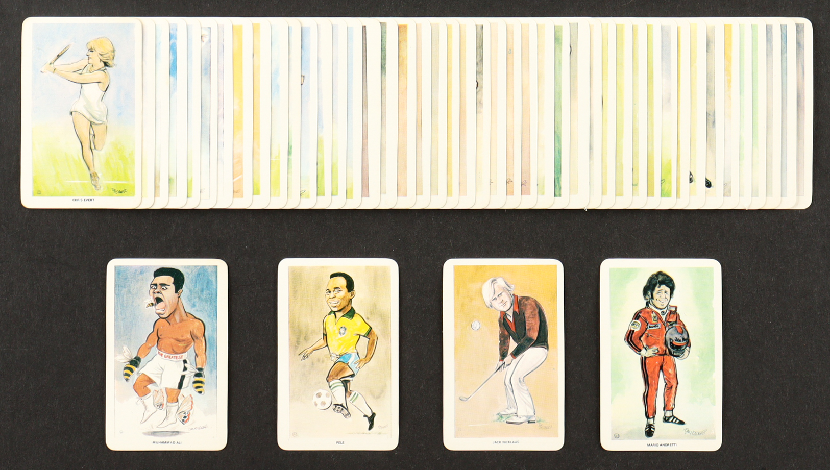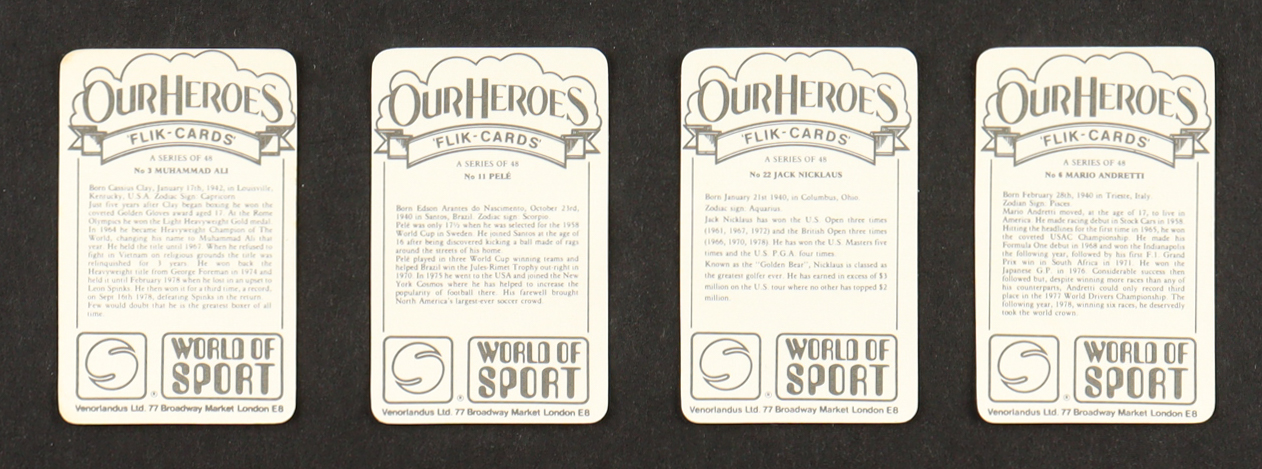 1979 Venorlandus Our Heroes World Of Sports Complete Set of (48) Cards with Muhammad Ali #3, Pele #11, Jack Nicklaus #22, Mario Andretti #6