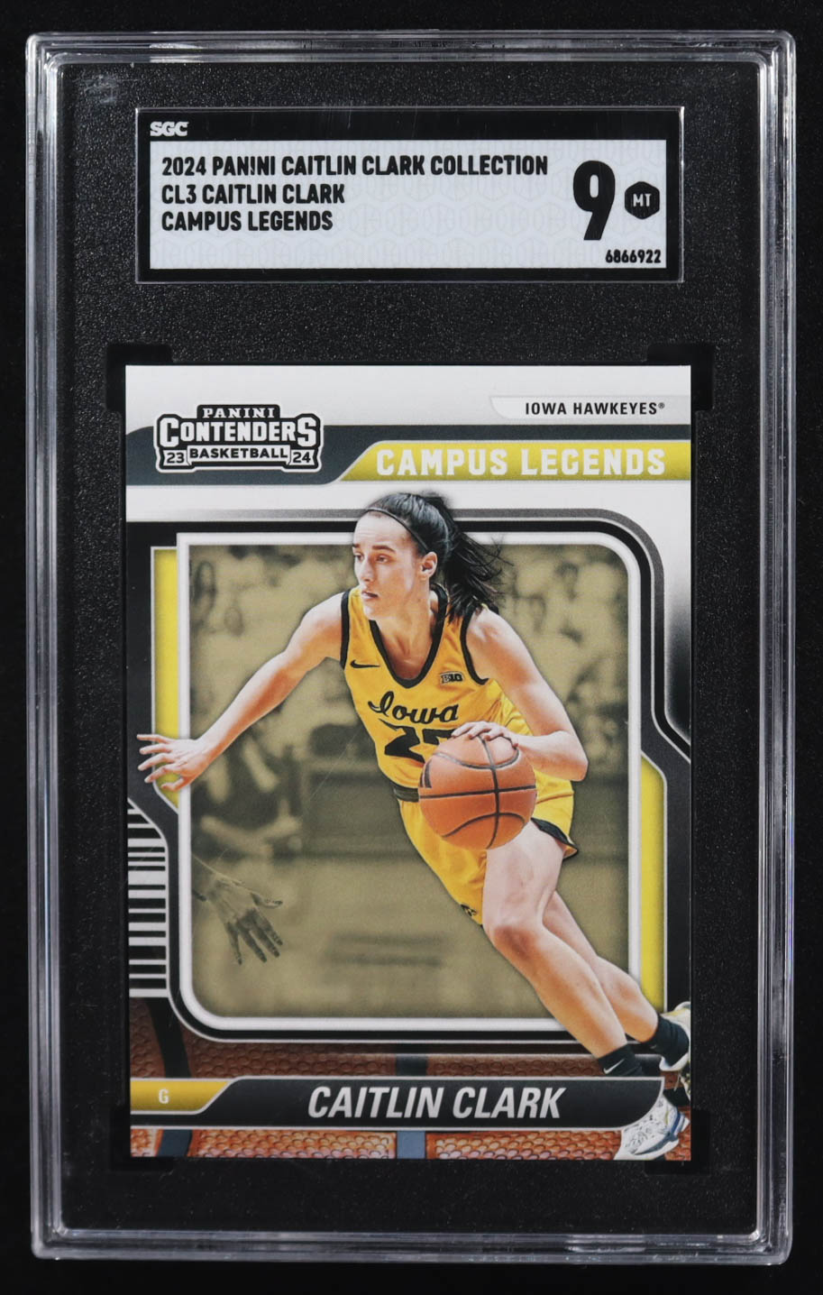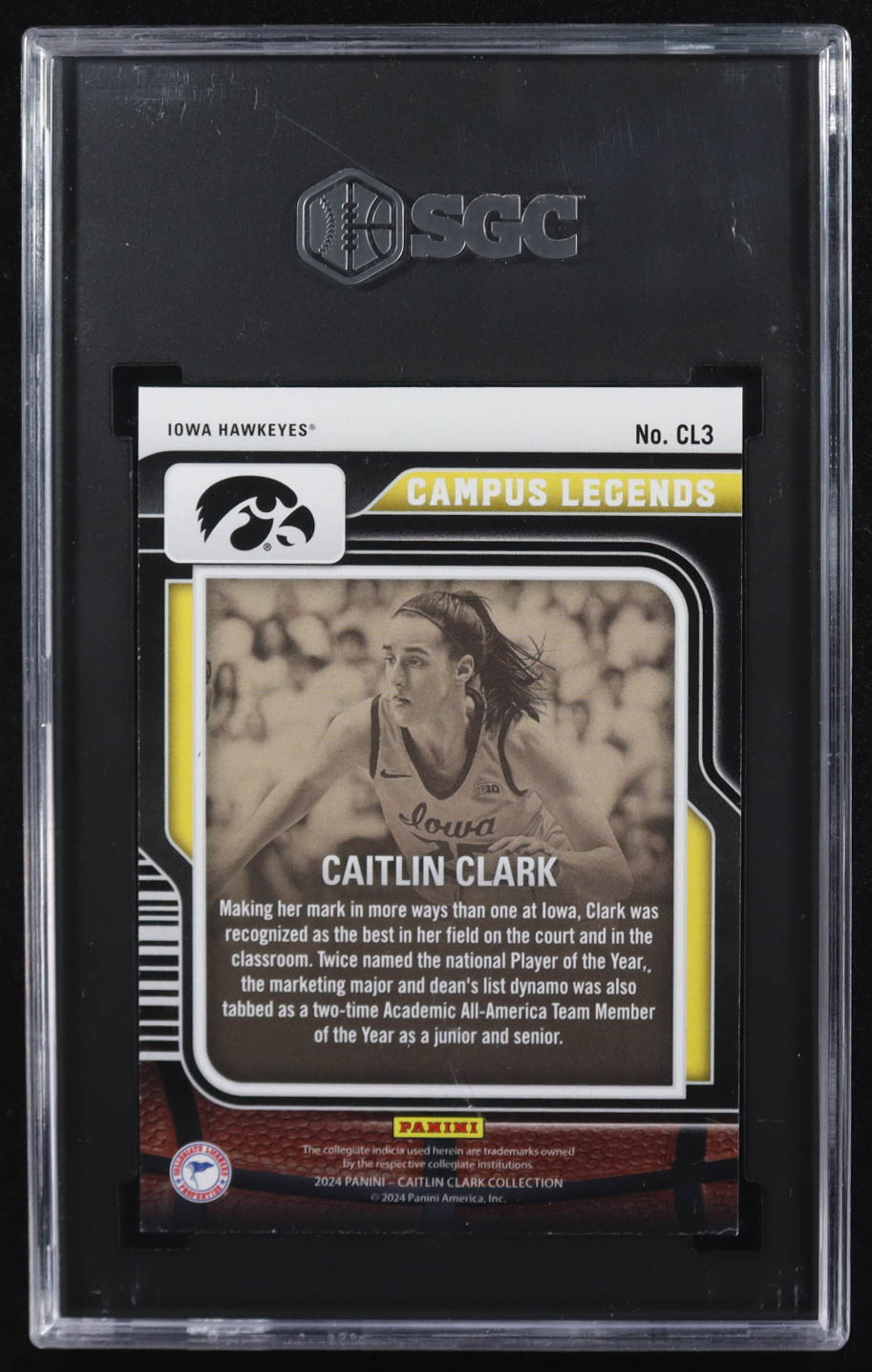 Caitlin Clark 2024 Panini Contenders Caitlin Clark Collection Campus Legends #CL3 RC (SGC 9)