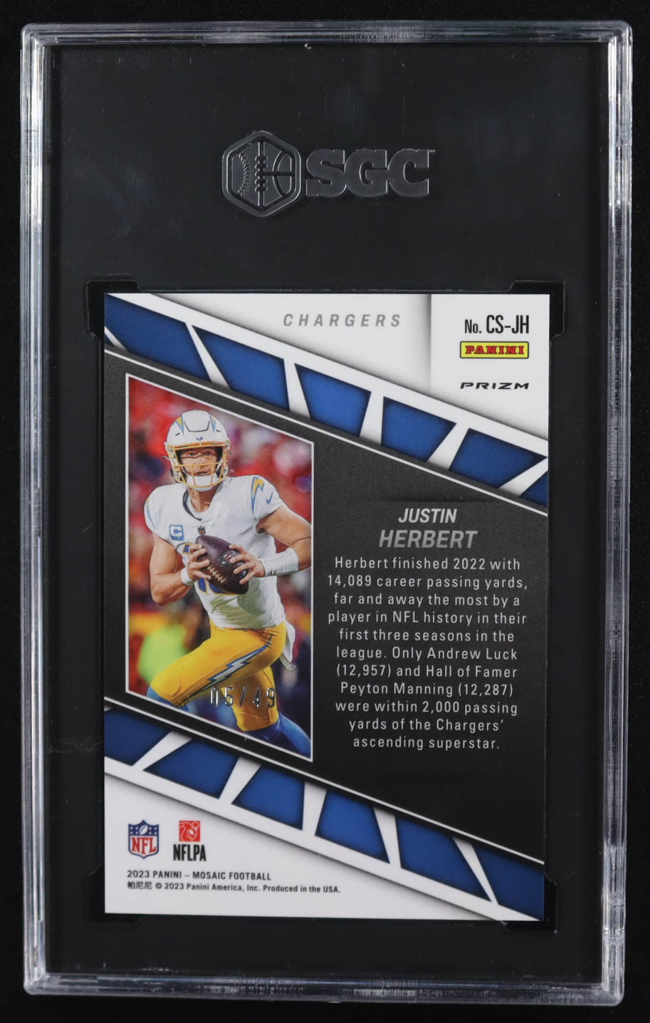 Justin Herbert 2023 Panini Mosaic Center Stage Purple Prizm #CS-JH #05/49 (SGC 10)