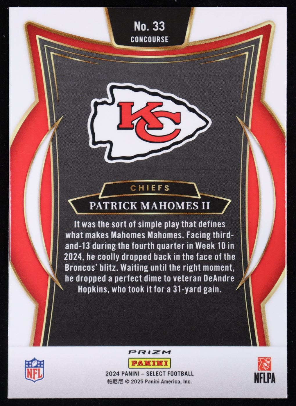 Patrick Mahomes II 2024 Select Prizm Red and Blue Shock #33